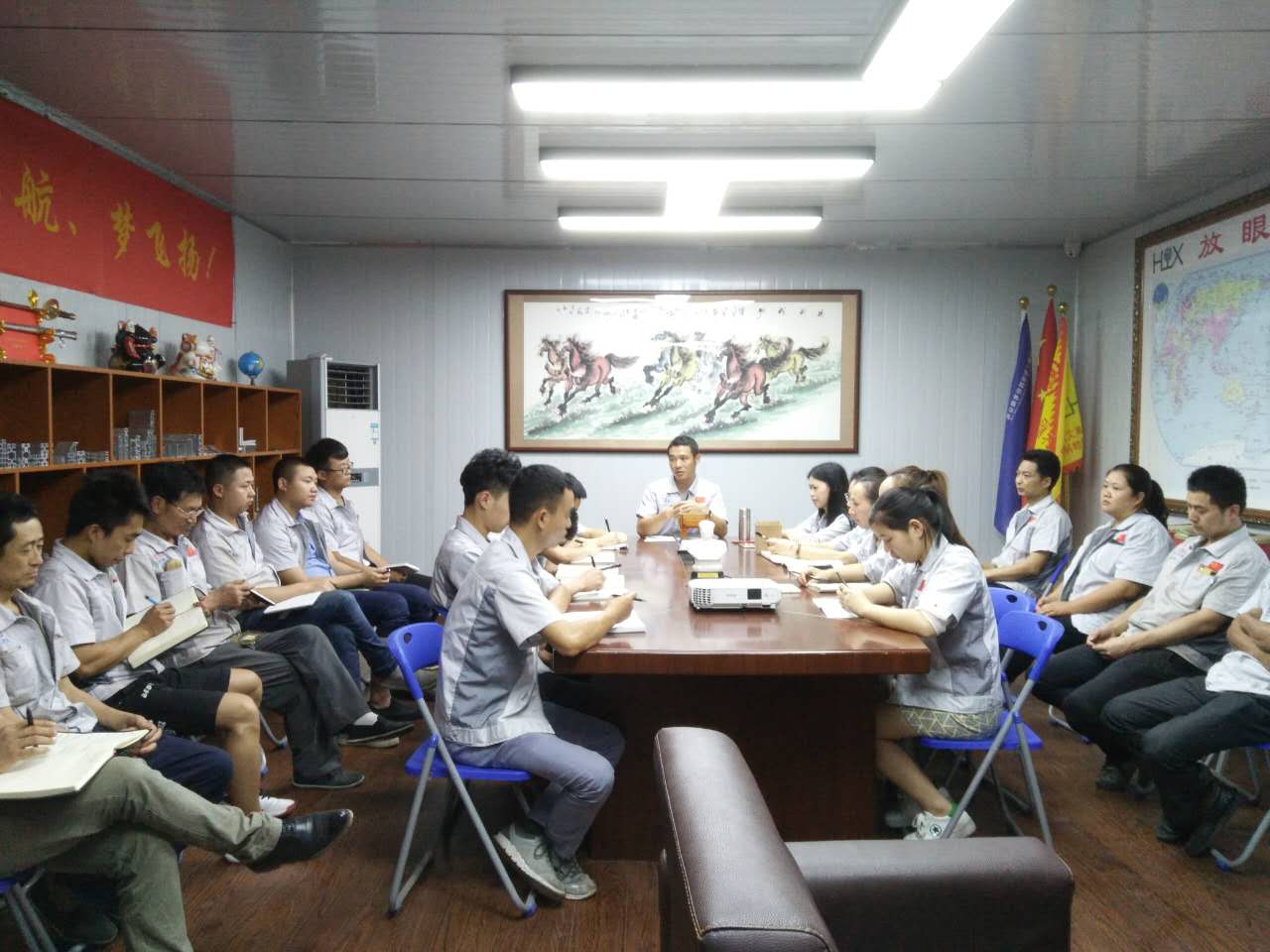 2017年6月7日晚,我司全體人員在匯興學校召開2017年五月月度大會,此次大會帶領人胡偉路總經理(以下簡稱胡總經理)。