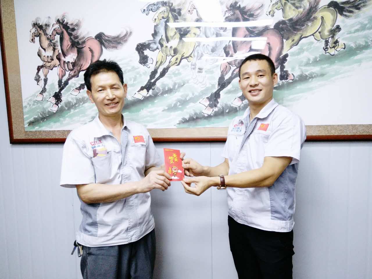 胡總經理(圖左)與月度部門“客服部”代表人蒲經理(圖右)合影