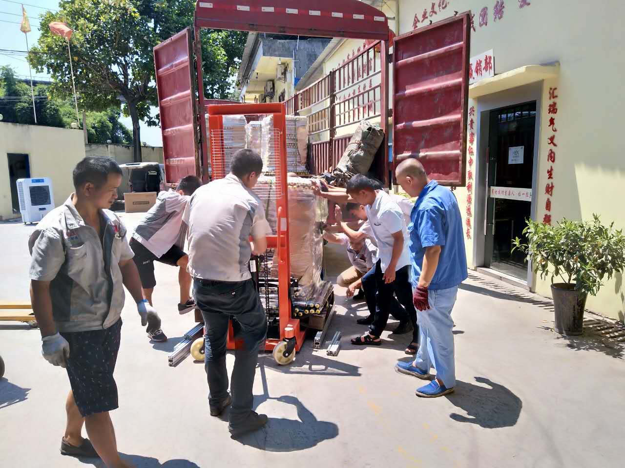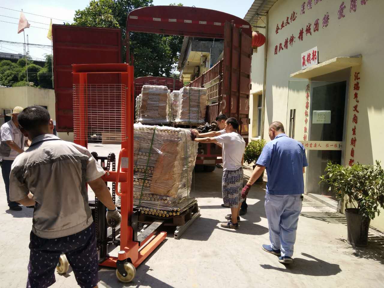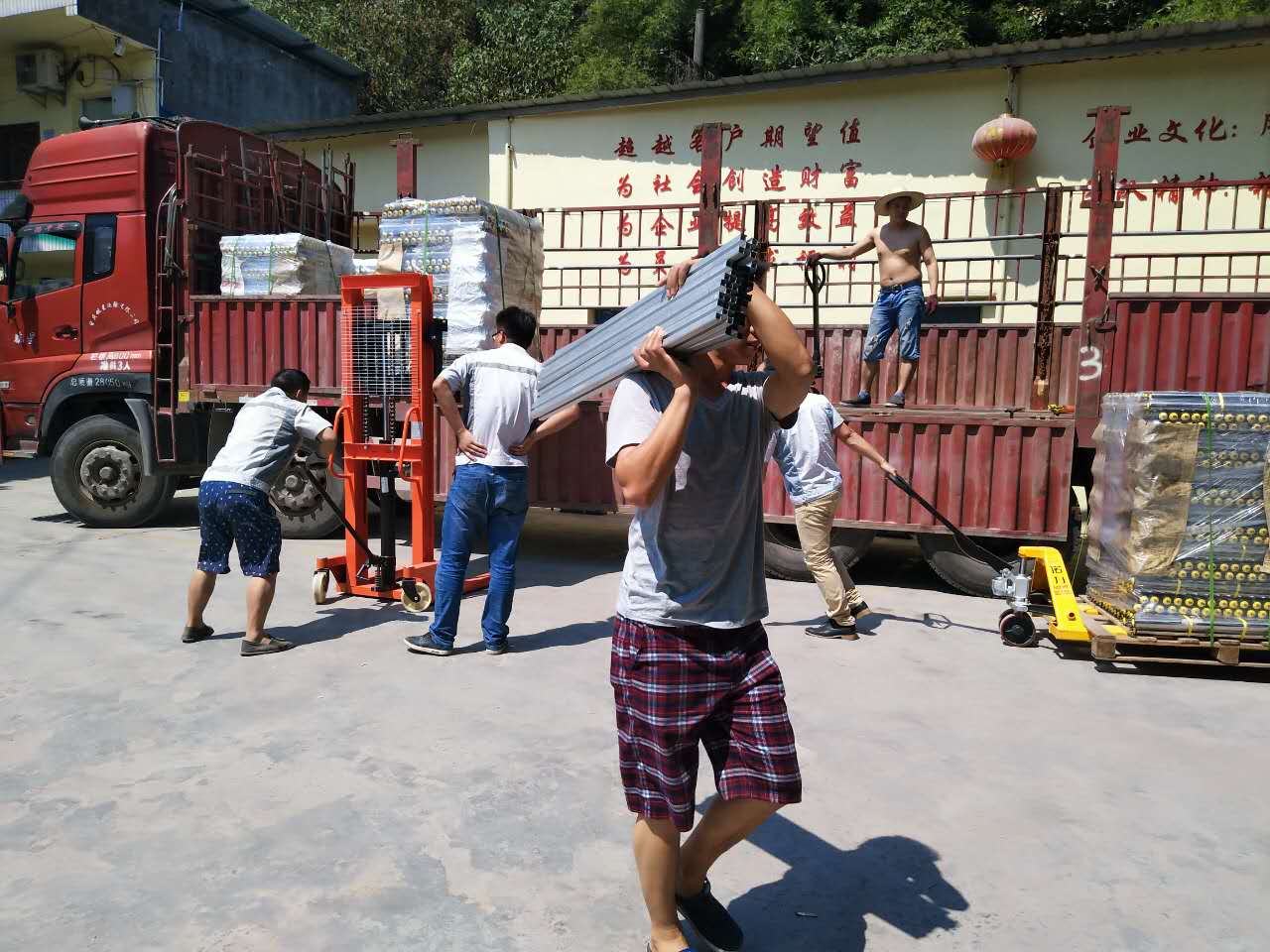 蔚藍的天空,纖云不染,澄碧的小河,緩緩流淌,而廠內的匯利興戰士們斗志昂揚。一星期的不懈奮斗終于到了收尾的時候,但匯利興戰士們毫不懈怠,看他們小心翼翼的推著車,旁邊還要小心翼翼的扶著,保護著我們的心血之作。老驥伏櫪,志在千里,因為有了一份夢想,在這里揮汗如雨;因為有了一份信任,在這里同心協力;因為有了一份責任,在這里竭盡全力;因為有了一份承諾,在這里盡職盡責。匯利興的戰士們,無論何時何地都是斗志昂揚、激情不減,看車上的大哥,在烈日灼灼下光著膀子拼命的干,而車下的大哥拼盡全力一點點縮小著到成功的距離。用情做人,用心做事,這是匯利興永不改變的宗旨。