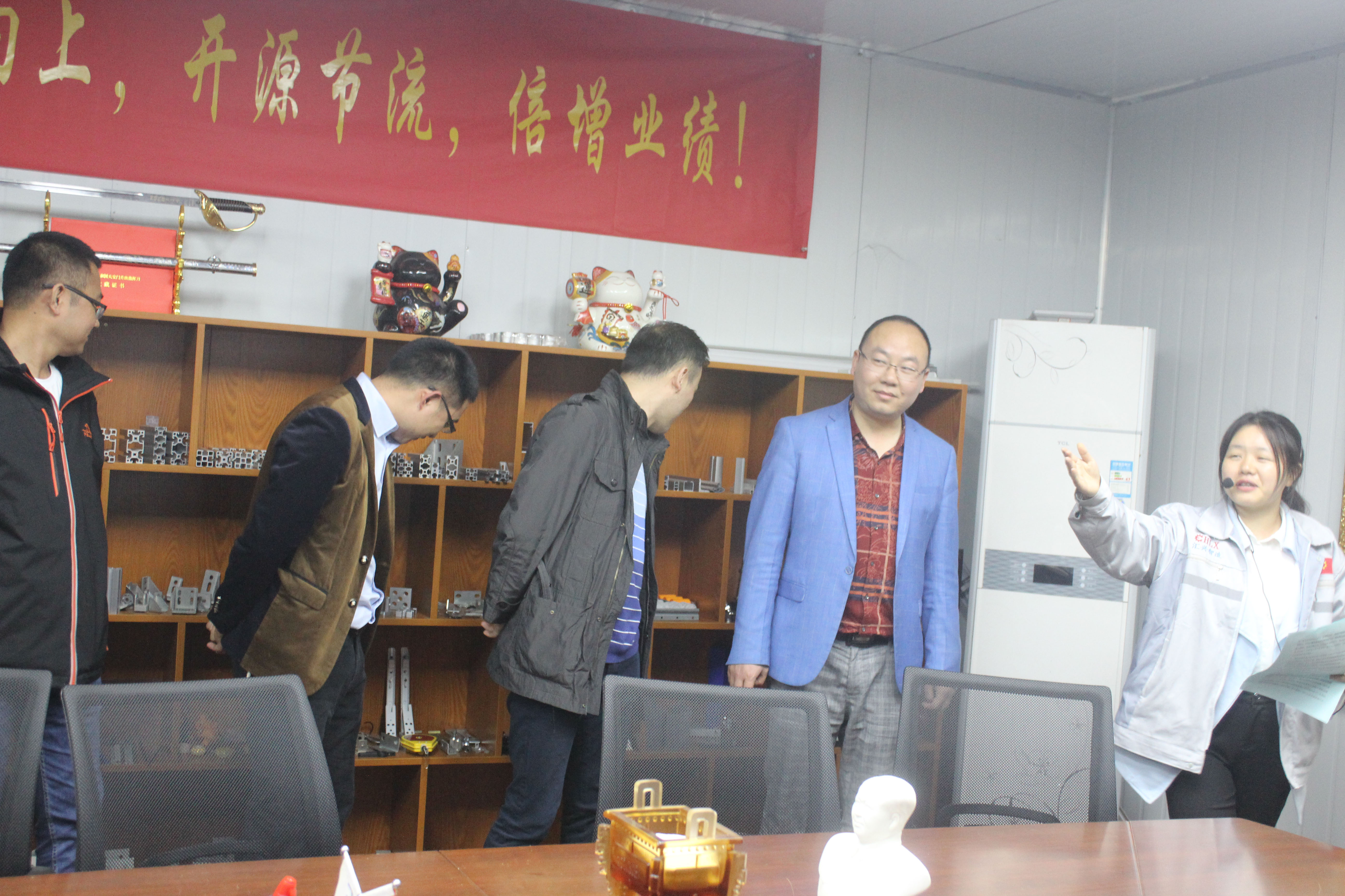 企業(yè)文化大使小敏正在為客人介紹匯利興文化 在此,客服部小敏(企業(yè)文化大使)為來訪的客人們相繼介紹了我司的企業(yè)文化,并帶領(lǐng)客人參觀了匯利興廠容廠貌,詳細(xì)介紹了匯利興的發(fā)展史及企業(yè)文化(三道:人道、孝道、商道,企業(yè)精神:用情做人、用心做事),并帶領(lǐng)客人初步了解了工業(yè)鋁型材、滾筒、精益管、工裝板、精密工業(yè)配件等材料的認(rèn)識,同時介紹了我司企業(yè)愿景:誓力打造中國自動化配件第一品牌,更好的滿足客戶個性化定制和柔性化生產(chǎn);此后對于匯利興濃厚的企業(yè)文化及厚重的企業(yè)實(shí)力,一致獲得了客人們高度的贊許及認(rèn)可并表示與匯利興合作十分放心。 客人與匯利興家人合影圖 客人為“喜上眉梢、鴻運(yùn)當(dāng)頭”錦上添花圖景 “相識滿天下,知心在匯興”,來訪客人受邀相繼在“喜上眉梢 鴻運(yùn)當(dāng)頭”留下深刻的印記,為此錦上添花?!坝36娭?,故源源而來”,相聚匯利興,故交友于匯利興同友人一起共發(fā)展共進(jìn)步。