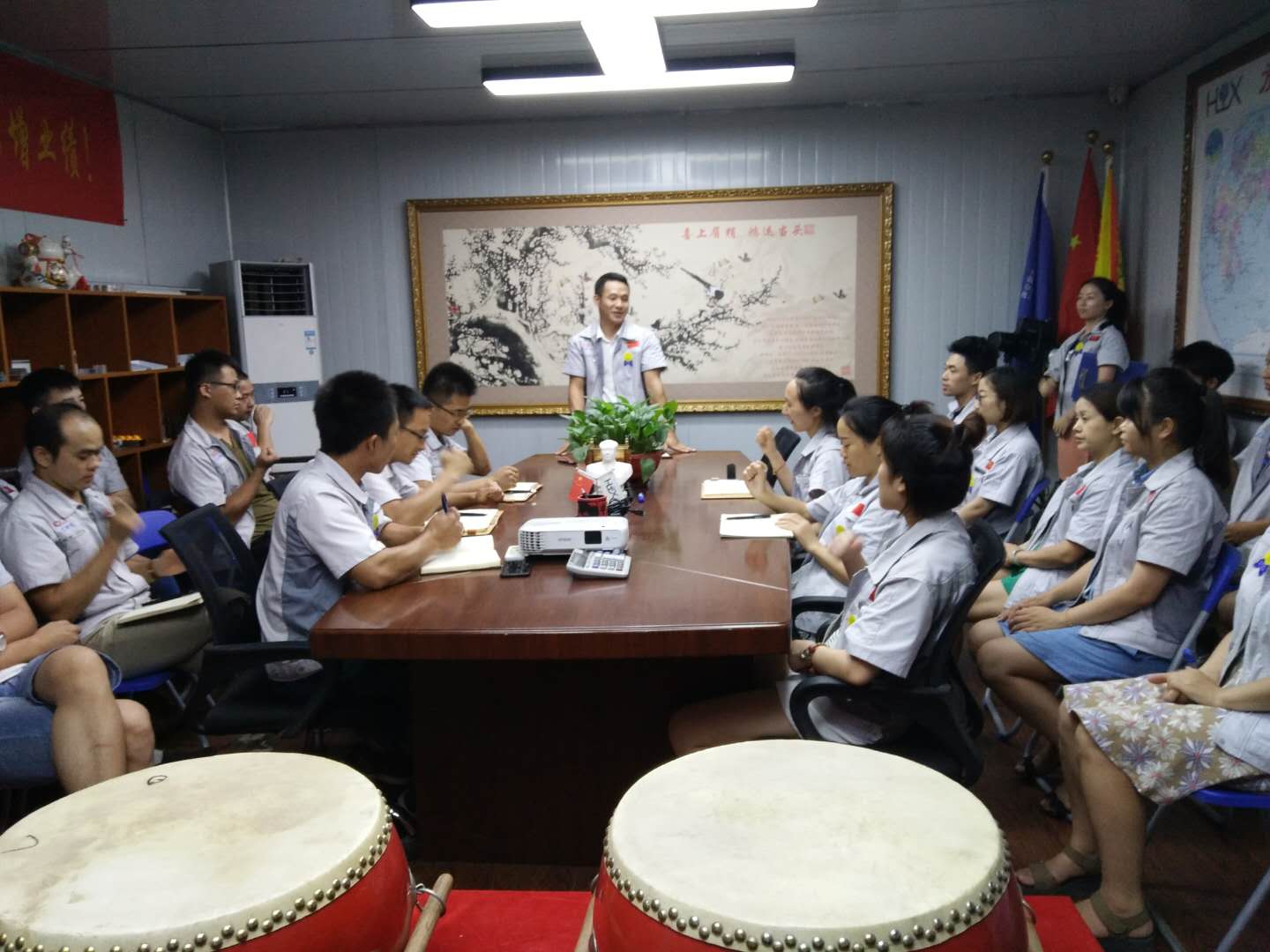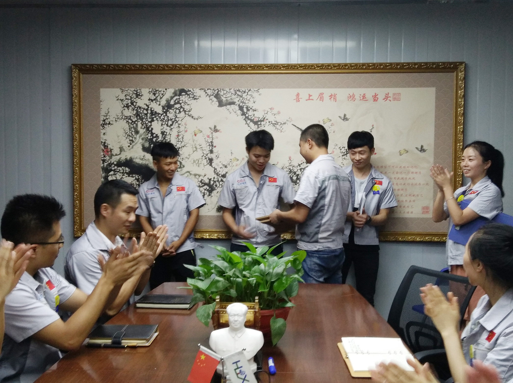 7月19日,匯利興(重慶)公司全體人員在匯利興學(xué)校召開(kāi)6月份月度會(huì)議。會(huì)議持續(xù)近兩小時(shí),現(xiàn)場(chǎng)氣氛十分熱烈,由行政部主管陳香草主持。 劍風(fēng)所指,所向披靡。會(huì)議開(kāi)始前,主持人陳香草帶領(lǐng)大家移步匯興文化廠地,整肅衣冠 ,對(duì)匯興人倍加推崇的“三道文化”(孝道、商道、人道)鄭重地鞠躬,莊嚴(yán)宣誓企業(yè)精神“用情做人、用心做事”,團(tuán)隊(duì)精神“忠誠(chéng)團(tuán)結(jié)、勤奮進(jìn)取”,隨后由匯興兩位女精英擊士氣鼓,凝人心、鼓干勁;緊接著胡偉路總經(jīng)理授予采購(gòu)部凝聚亮劍精神的一把寶刀,亮出氣勢(shì)、匯聚力量,砍前行荊棘、勇踏匯興征途。 圖一示意圖 圖二采購(gòu)部家人手握寶刀合影圖 隨著家人們熱情高漲,會(huì)議開(kāi)啟第二議程。全體人員隨主持人巡視倉(cāng)儲(chǔ)A區(qū)長(zhǎng)材區(qū)與倉(cāng)儲(chǔ)B區(qū)配件區(qū)庫(kù)存及加工區(qū)面貌,集思廣益、廣納諫言并相互監(jiān)督面貌的保持。 圖三示意圖 作為掛牌企業(yè)(股票代碼:839258),匯利興長(zhǎng)期以來(lái),一直重視新鮮血液的注入和人才的引進(jìn),截止今日匯利興從之前的幾個(gè)人變成現(xiàn)在的幾十人,團(tuán)隊(duì)力量逐步增強(qiáng),為行業(yè)貢獻(xiàn)力量愈發(fā)強(qiáng)大。會(huì)議開(kāi)啟第三議程-新員工入職歡迎儀式,物控部徐主管為新員工頒發(fā)紀(jì)念品。 徐主管為新員工頒發(fā)紀(jì)念品示意圖 為了增強(qiáng)企業(yè)凝聚力,表彰先進(jìn),樹(shù)立楷模,激勵(lì)員工奮發(fā)向上,形成人人爭(zhēng)當(dāng)先進(jìn),人人為公司發(fā)展做貢獻(xiàn)的行為,實(shí)現(xiàn)持續(xù)有效的激勵(lì)機(jī)制和企業(yè)良好傳統(tǒng),會(huì)議發(fā)起第四個(gè)議程——表彰儀式,對(duì)6月份在工作中表現(xiàn)突出的優(yōu)秀團(tuán)隊(duì)和個(gè)人給予表彰。 優(yōu)秀團(tuán)隊(duì)工程部家人獲得者與張副總合影示意圖 月度之星周榮、李如洪家人與張副總合影示意圖 隨后部門負(fù)責(zé)人(徐主管、蒲經(jīng)理、熊經(jīng)理)作2018年度工作總結(jié),總結(jié)上半年工作及部門的得與失,有則改之無(wú)則加勉。談到各部門間配合密度,工作作風(fēng)及個(gè)人精神面貌等相關(guān)事宜。并隨即提到匯利興獨(dú)有的企業(yè)文化“家人”,匯興每一位同事都是彼此的家人,并肩作戰(zhàn)的家人,共筑匯興夢(mèng)的家人。 徐主管、蒲經(jīng)理、熊經(jīng)理作2018年度工作總結(jié)示意圖 會(huì)議最后,胡偉路總經(jīng)理作會(huì)議總結(jié)及未來(lái)展望。會(huì)上,胡偉路總經(jīng)理首先對(duì)三位負(fù)責(zé)人所作的發(fā)言,提出了新的總結(jié)及建議;其次,針對(duì)目前所存在的短板作出了相應(yīng)的指示并勉勵(lì)匯興人要學(xué)會(huì)總結(jié)、學(xué)會(huì)反思,這不僅是一種智慧,更是下次進(jìn)步的開(kāi)端。并表示,匯利興團(tuán)隊(duì)至始至終都是最棒的團(tuán)隊(duì),永不言敗的團(tuán)隊(duì);因此要堅(jiān)信自己、相信自己,穩(wěn)扎每一步伐,向前沖! 圖四示意圖 最后,全體匯興人起立,整肅衣冠,擊士氣鼓并齊喊“為夢(mèng)想沖刺,我是匯利興的一名戰(zhàn)士”,整個(gè)會(huì)場(chǎng)環(huán)繞著吶喊聲,現(xiàn)場(chǎng)激情澎湃、士氣高昂、振奮人心。