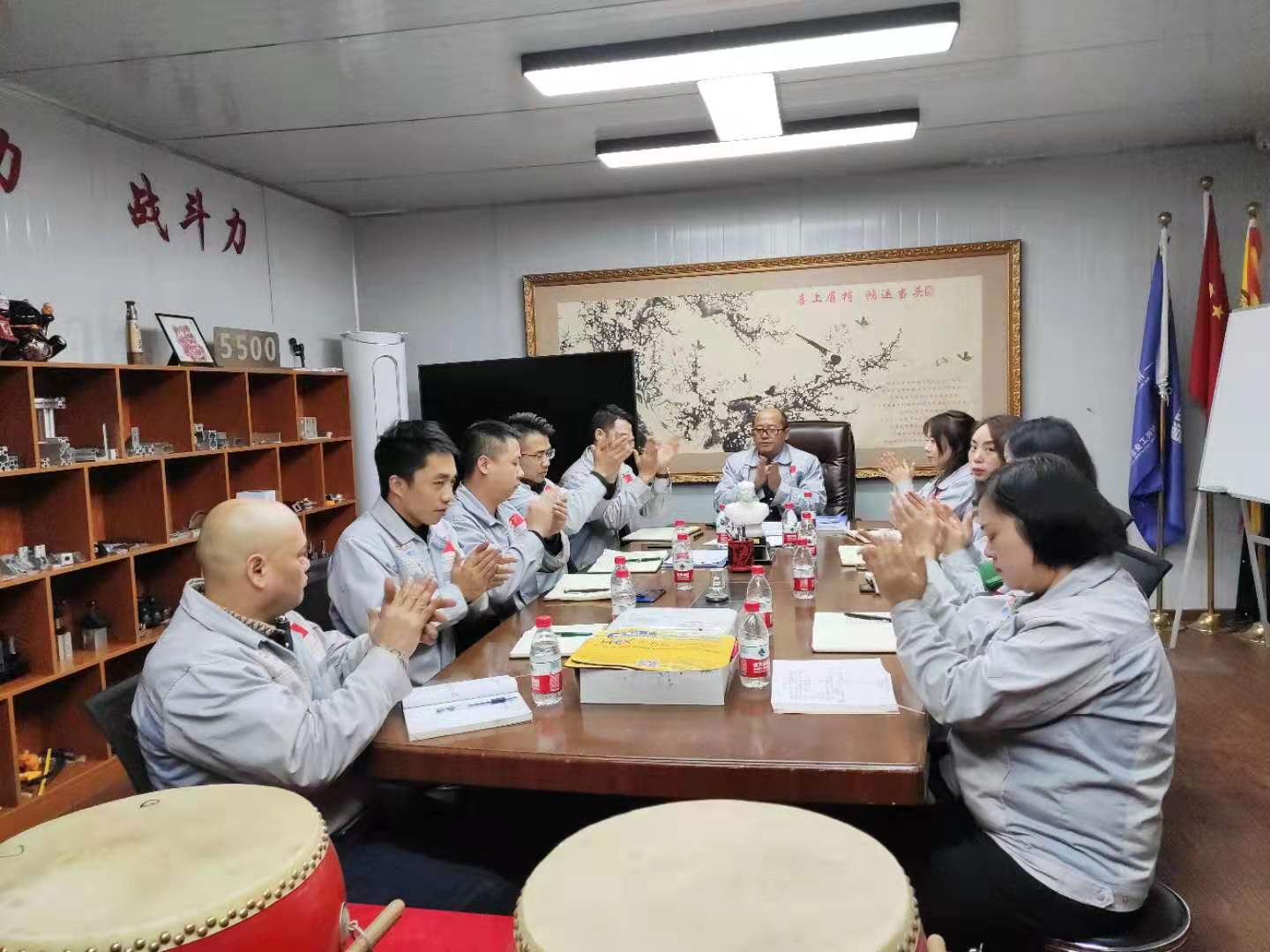 12月9日,公司董事長鐘輝先生蒞臨重慶子公司考察并指導工作,于16點40分在會議室召開主管會議。 會議前,例行匯利興企業文化,兩位核心高管敲響士氣鼓,士氣比武器更重要。