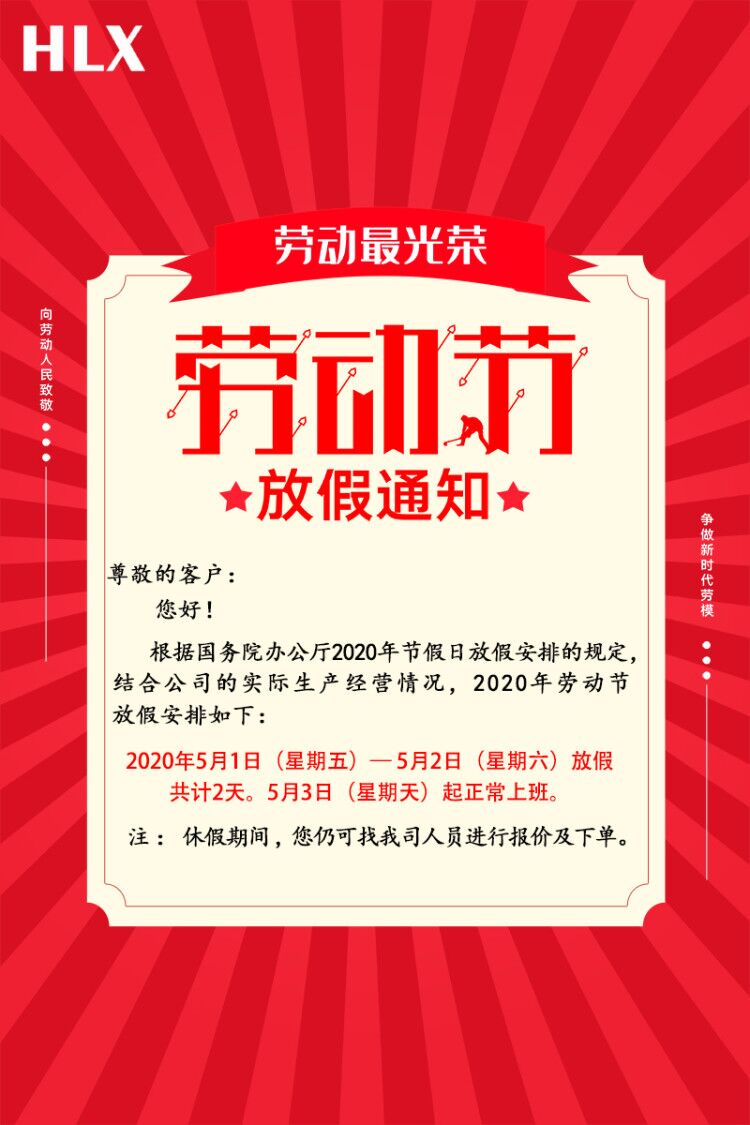 匯利興新聞 當前位置:網站首頁 >> 匯利興新聞 >> 2020年勞動節放假通知